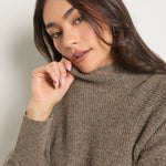 Minimalist sweater perfection. Drapes in a louche, oversized shape with soft mock T Neck. Soft and comfy for winter warmth.